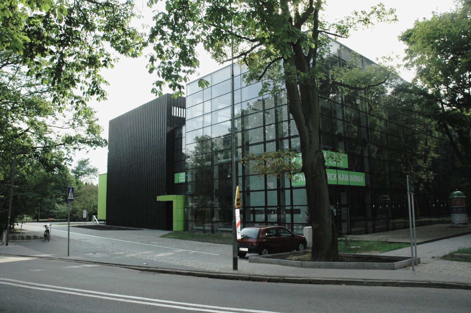 • Powstała więc koncepcja dwóch brył będących rodzajem negatywu, wzajemnym wizualnym zaprzeczeniem. Pierwsza, osnuta tajemnicą bryła istniejącego budynku starego „Kalmara” (bud. A), zamknięta, ciemna, stanowiąca próbę odzwierciedlenia hermetycznej, nieco niedostępnej sfery kultury. Druga, pokazująca na zewnątrz całą swoją zawartość, bryła nowego „Kalmara” (bud. B), będąca metaforą kultury pop, masowej, dostępnej dla wszystkich, wychodzącej do widza.