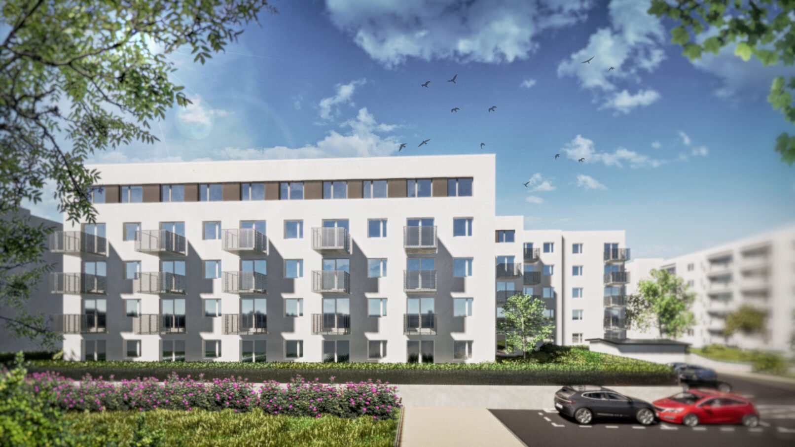 Od strony ulicy Akacjowej zlokalizowano pięciokondygnacyjny (segment średniowysoki) segment A budynku o wysokości maksymalnej równej 15,93 m (15,58 m od strony elewacji frontowej). W głębi działki projektuje się (segment niski) segment B budynku o wysokości maksymalnej równej 16,40 m (15,58 m od strony elewacji frontowej), który posiada cztery kondygnacje naziemne przy czym na ostatniej kondygnacji zaprojektowano mieszkania z antresolą. Tym samym pod względem gabarytów uzyskano jednorodną pięciokondygnacyjną formę całego budynku. Pod budynkiem i częściowo poza jego obrysem zlokalizowano wspólny garaż podziemny z jednym wjazdem. Połączony funkcjonalnie i instalacyjnie garaż, stanowi wspólną przestrzeń z której dostępne są klatki schodowe i dźwigi osobowe zapewniające komunikację w poszczególnych segmentach. W sumie budynek posiada sześć kondygnacji tj. kondygnację podziemną z garażem i pomieszczeniami technicznymi oraz pięć kondygnacji nadziemnych z lokalami mieszkalnymi.