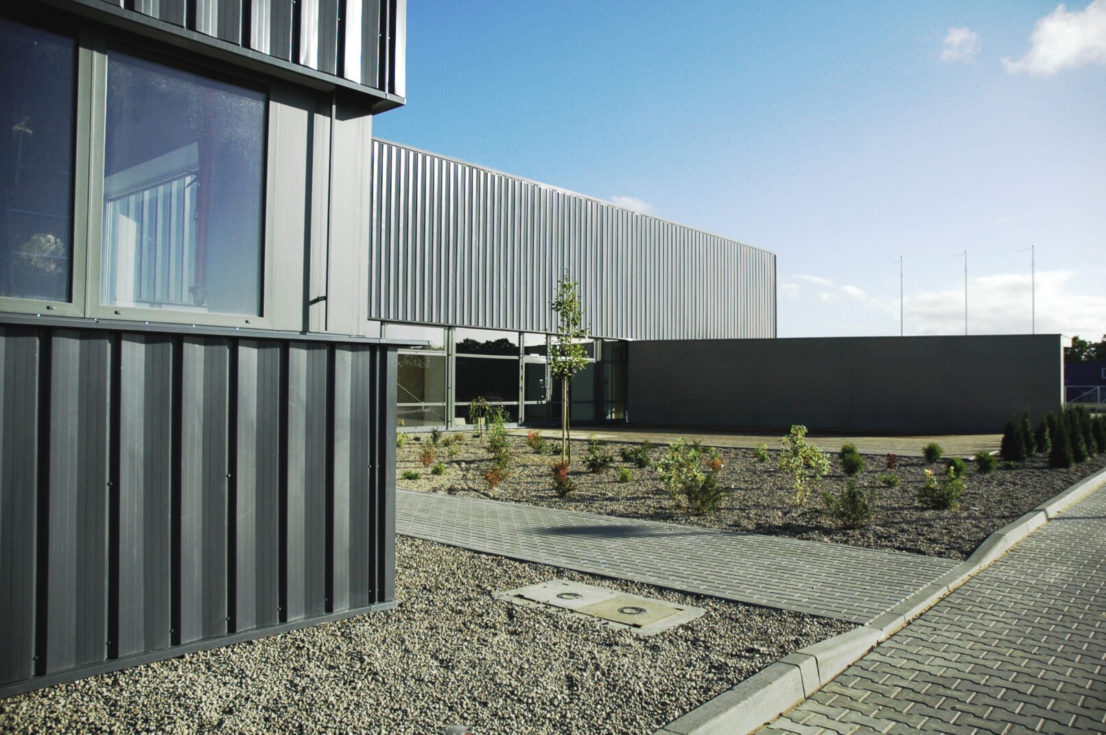 Zaprojektowano halę z częścią montażową i socjalno - biurową na potrzeby zakładu montażu wyświetlaczy ciekłokrystalicznych i sprzętu komputerowego dla firmy „HATTELAND”. W części produkcyjnej przewidziano miejsce pod trzy stoły montażowe, część testowania wyrobów, strefę pakowania, strefę przyjmowania części i ekspedycji. Projektuje sie również dwie strefy magazynowe, pomieszczenia techniczne, śmietnik z kontenerem do prasowania śmieci i węzeł sanitarny. W części biurowo socjalnej wyodrębniono cześć biurową z pokojami indywidualnymi i pokojem wieloosobowym, salą konferencyjna i częścią recepcyjną. W części socjalnej zaprojektowano stołówkę z zapleczem kuchennym, szatnie pracowników , pomieszczenia gospodarcze i węzeł sanitarny. W zakładzie przewiduje się docelowo zatrudnienie 120 osób na trzech zmianach po 40 osób w części produkcyjnej oraz do 22 osób w części biurowej. Zaprojektowano halę stalowa prefabrykowaną z attyką z poszyciem z blachy trapezowej w kolorze grafitowym.