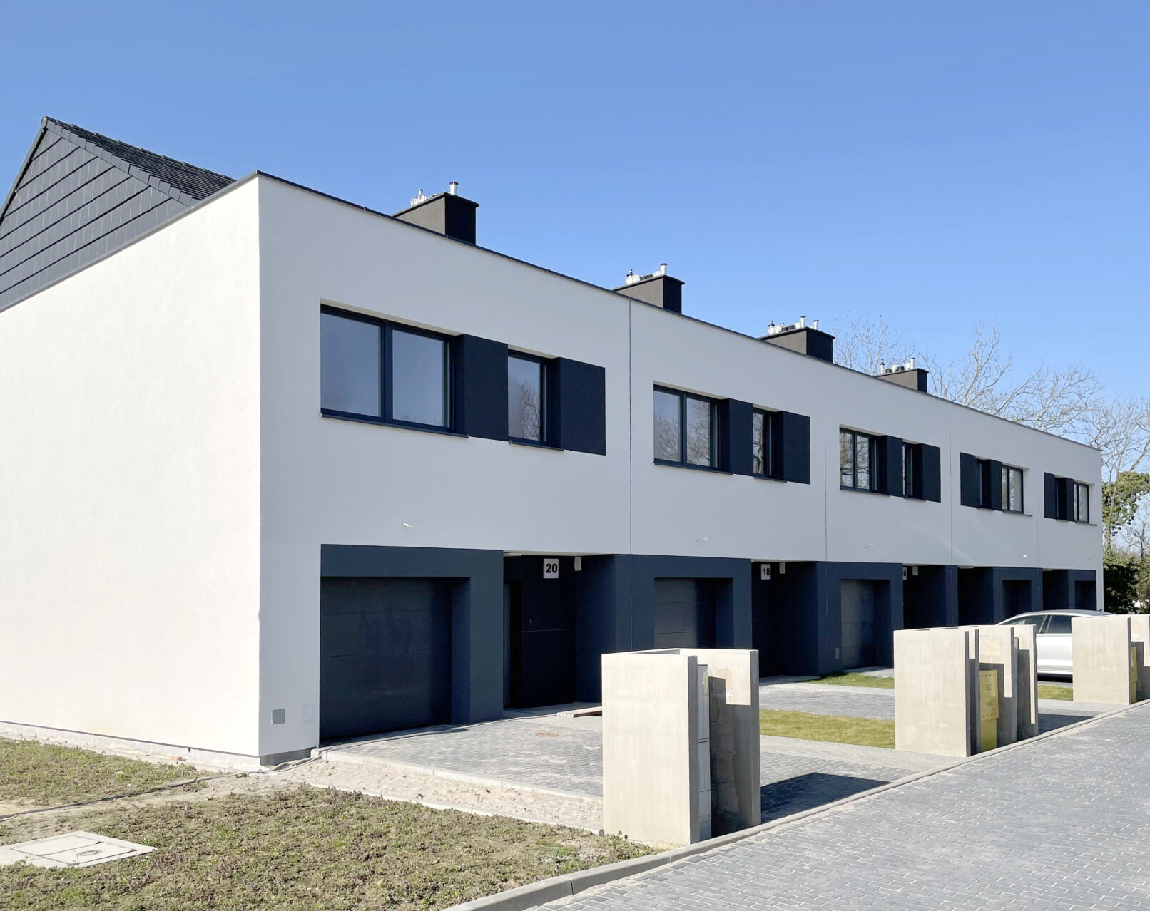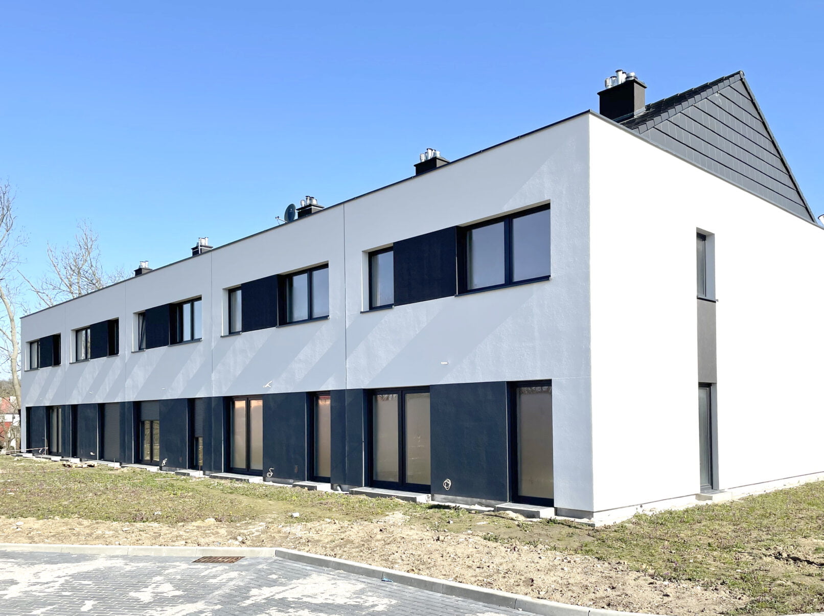 • Założeniem było stworzenie prostego, wyrazistego zespołu zwartej zabudowy szeregowej, dostosowanej gabarytami do sąsiedniej zabudowy oraz zgodnej z zapisami planu miejscowego.