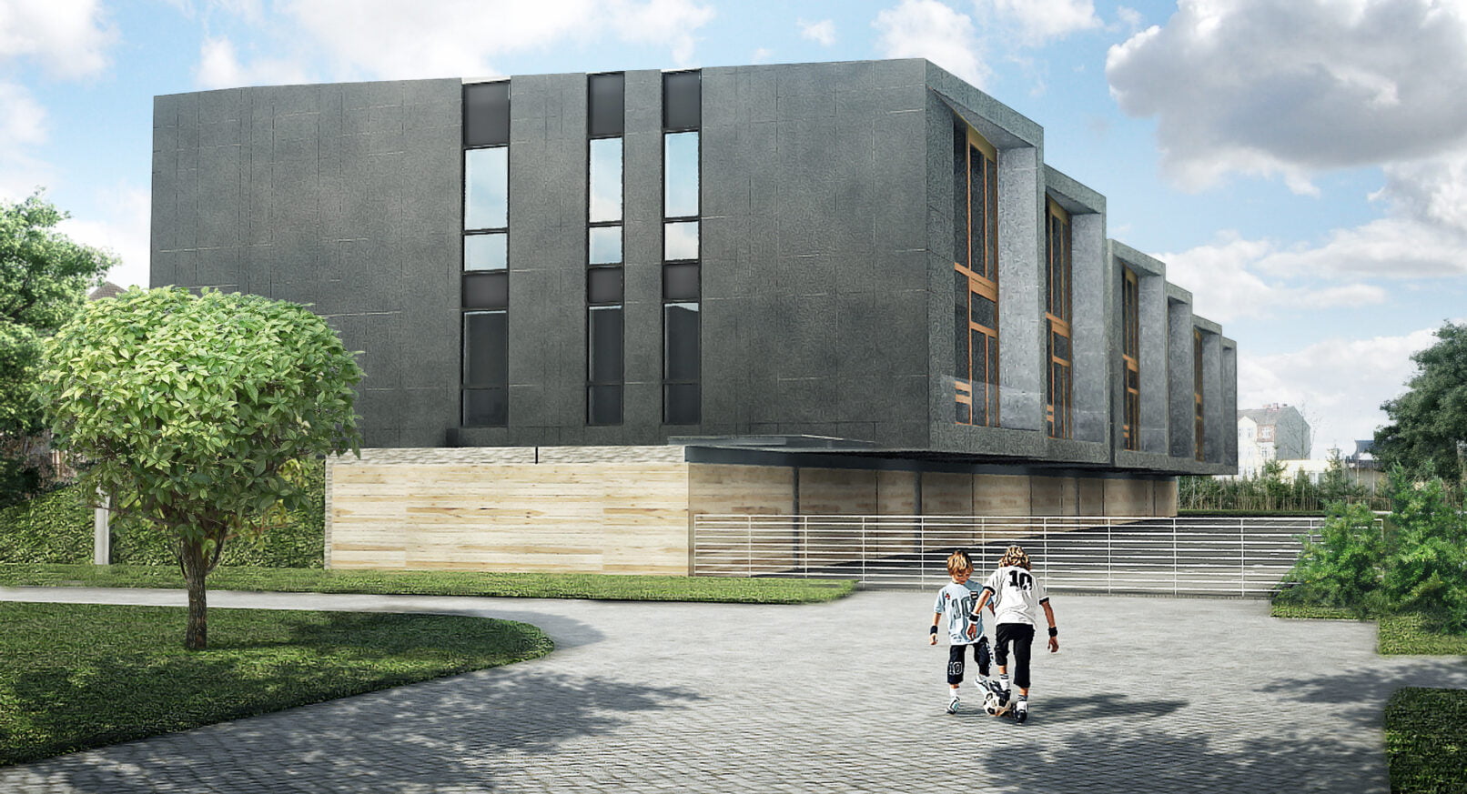 Zabudowę ukształtowano w formie współczesnej architektury miejskiej w sposób zgodny z formami zabudowy istniejącej, tak by zachować maksymalnie kontakt z otoczeniem. W zagospodarowaniu działki uwzględniono materiały naturalne takie jak nawierzchnie żwirowe, kostka betonowa w uzupełnieniu tradycyjnych chodników, elewacje parteru z drewna