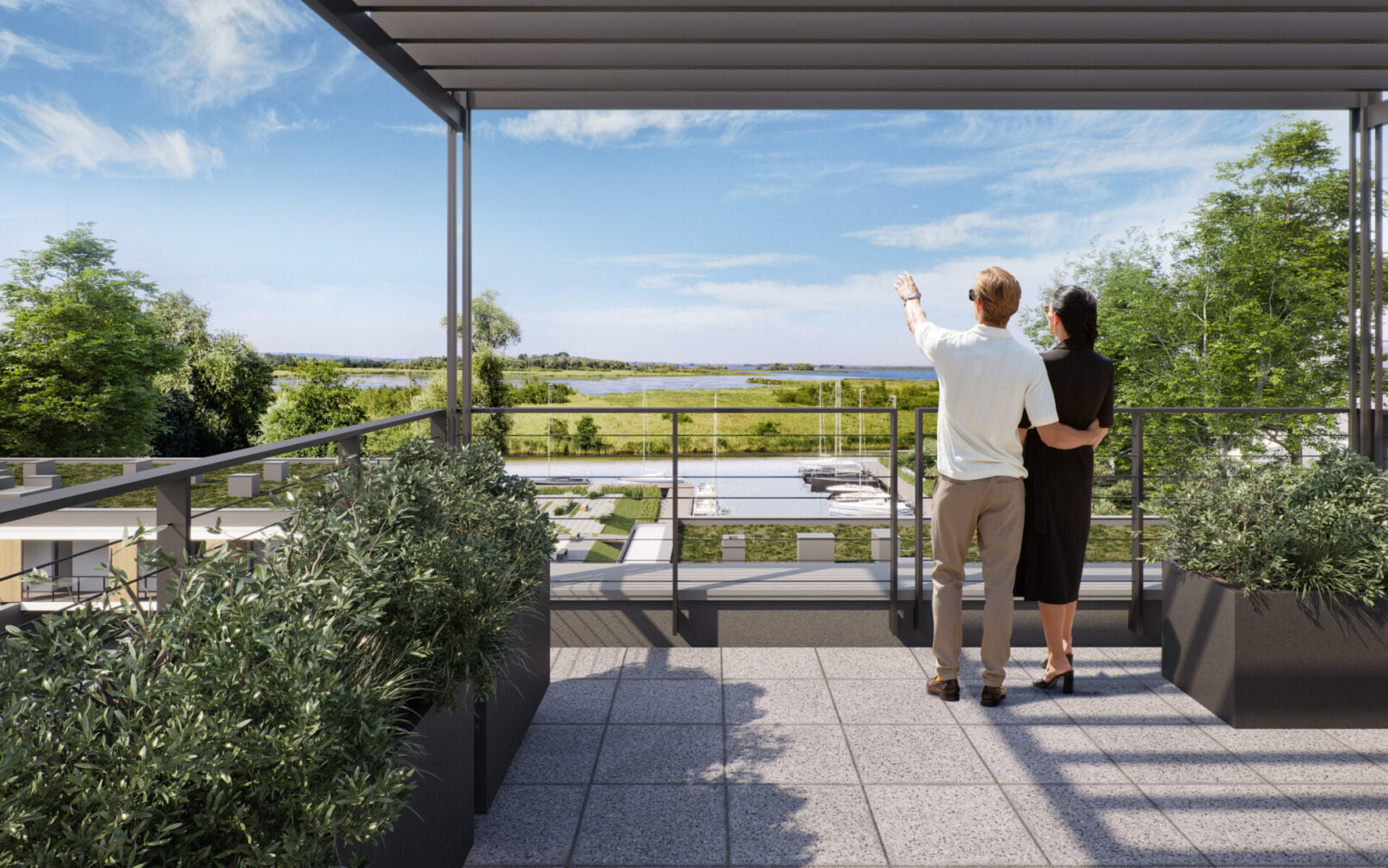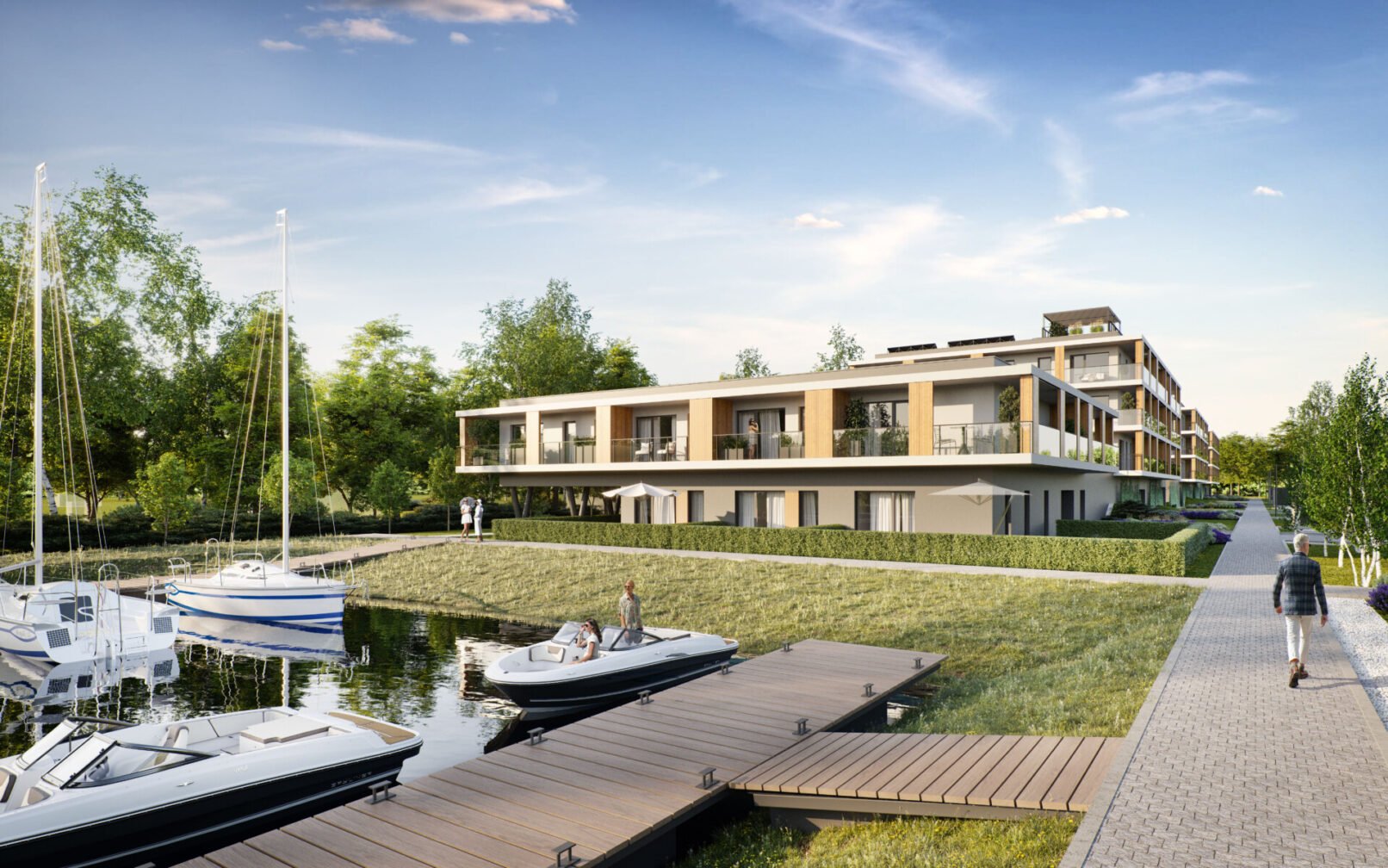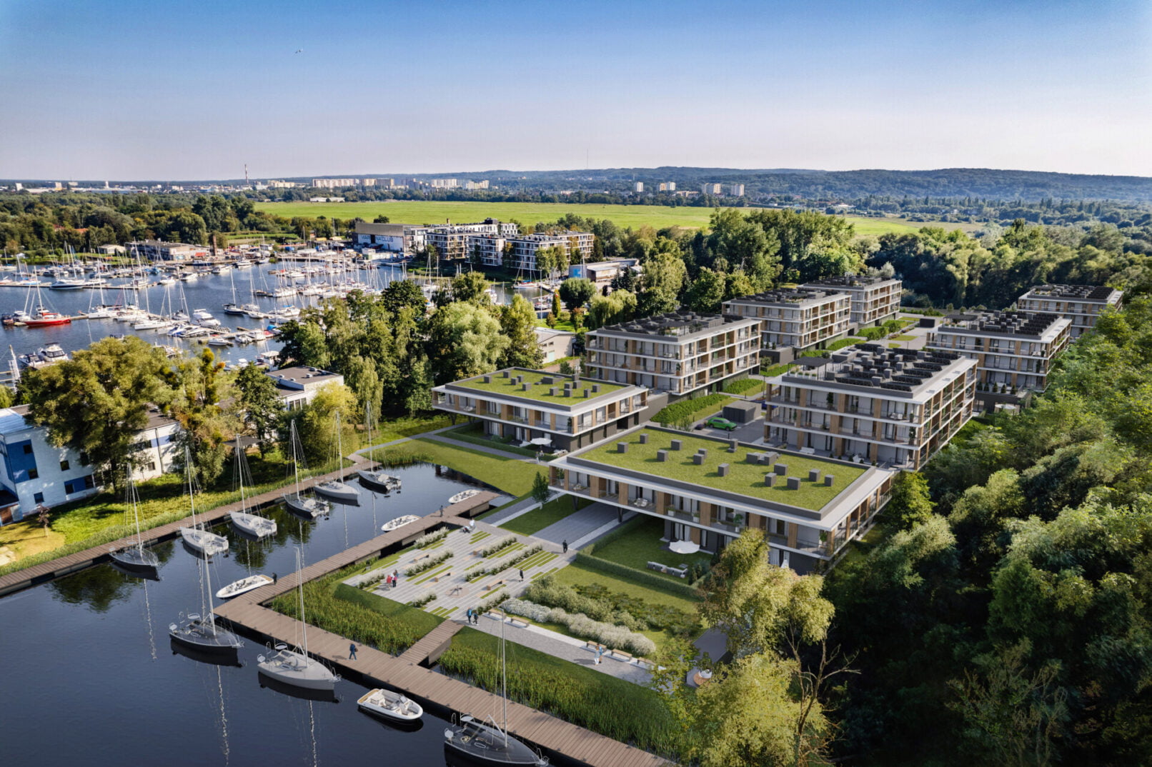• Budynki i ich lokalizację zaprojektowano w sposób zapewniający maksymalne otwarcia widokowe wschód zachód: tj na bezpośrednie sąsiedztwo jeziora, mariny oraz terenów zielonych.